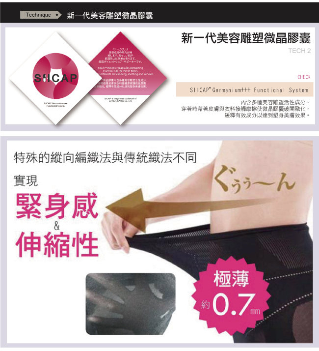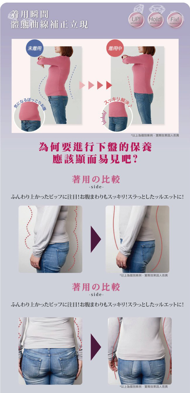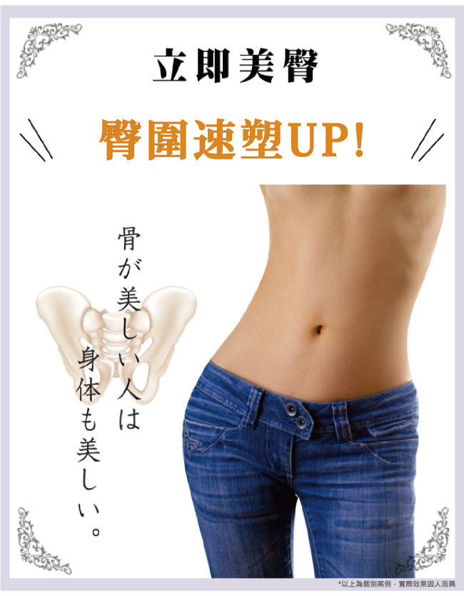 利用獨特鑽型構造矯正骨盆,針對下盤分區加壓塑型,並添加美肌護理配方,輕鬆達到極致美臀!