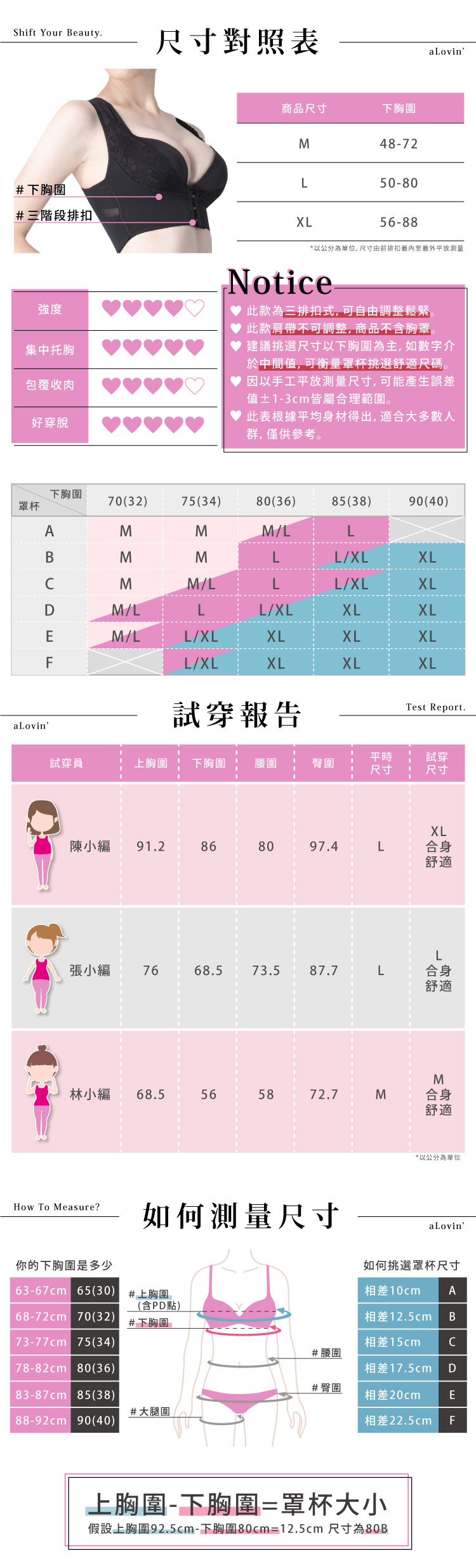 A:建議以測量下胸圍的方式,只要在範圍內都可以穿唷!