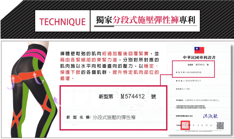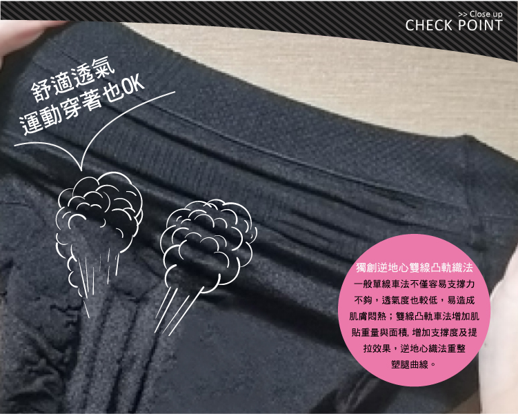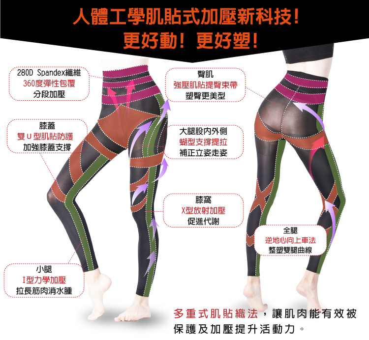 大腿 280D Spandex纖維360度彈性包覆及分段加壓,