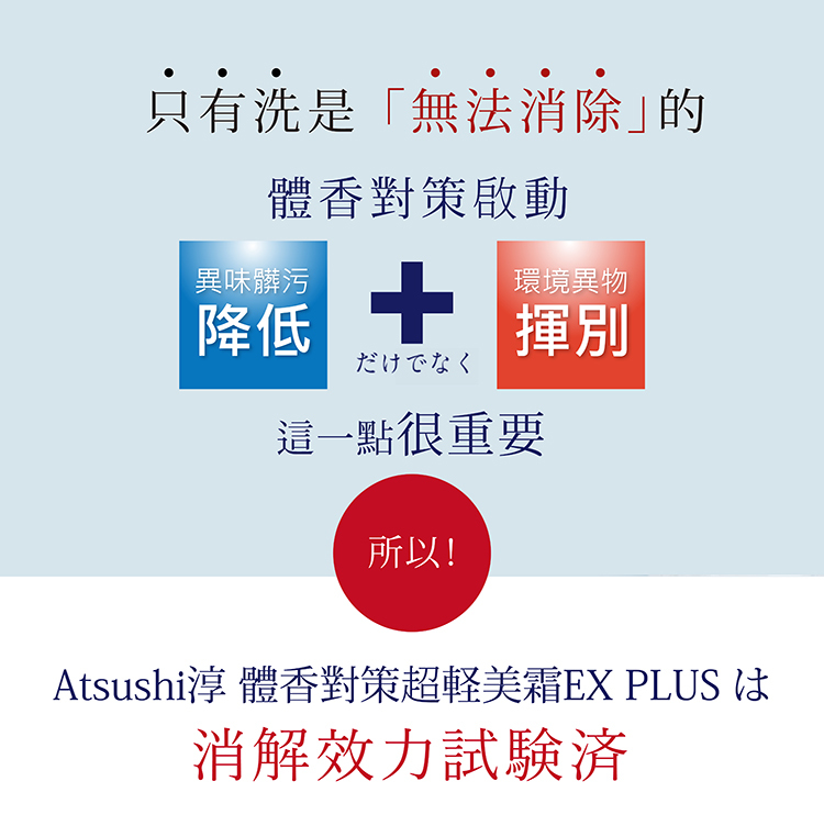 只要出門前用【ATSUSHI淳】體香對策超軽美霜EX PLUS針對需要加強的部位塗抺,