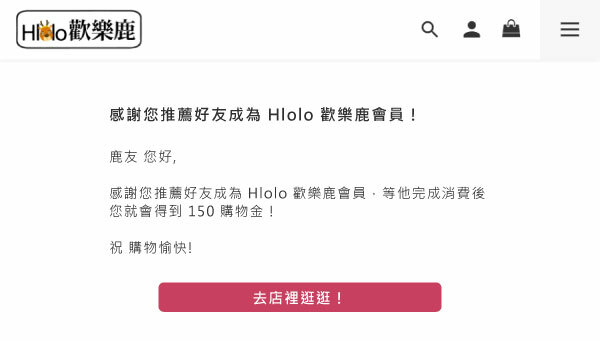 *購物金成功發送給推薦人後,會寄送信件通知您唷!