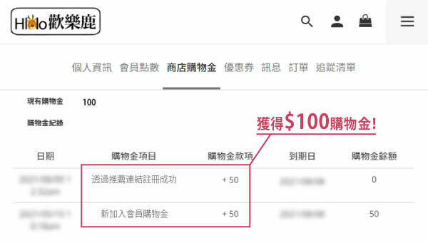 2. 新朋友透過推薦連結註冊成為會員,就能領取購物金優惠。