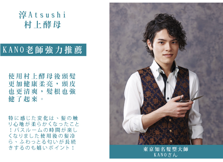 | 產品特色 | 村上酵母由村上先生與日本東京農業大學合作開發!找出呼吸酵母中的珍貴成分,維生素H及多重營養配方對於髮絲頭皮有極大的幫助。整套系列為日式專業髮型沙龍使用商品,完整三步驟打造完美髮質。洗髮泡適用於任何髮質,胺基酸配方泡沫柔細,不造成髮絲磨損,即使柔嫩頭皮也能放心使用。獨家研發呼吸酵母可修復來自燙髮及染髮的損傷,咖啡因有助於秀髮的健康代謝及賦活,海鹽改善頭皮油脂,避免頭髮厚重,幫助盈潤豐髮,活順髮絲。 |