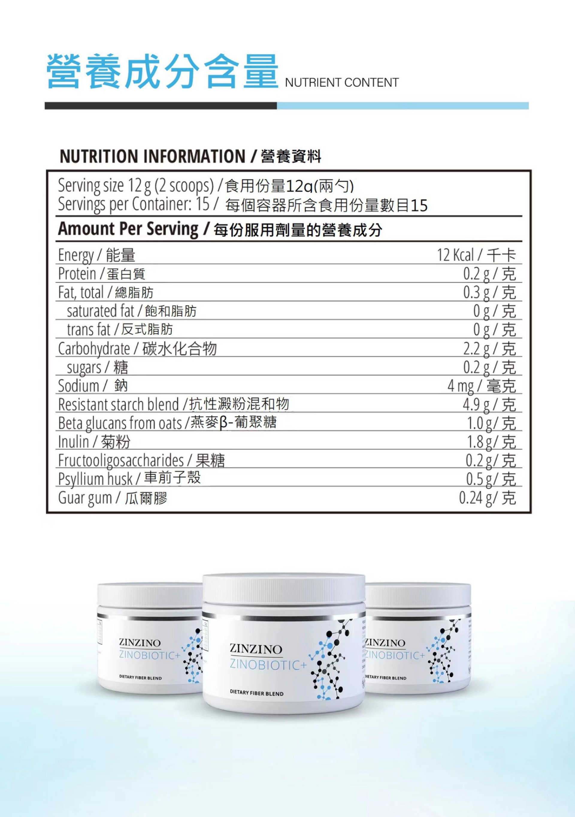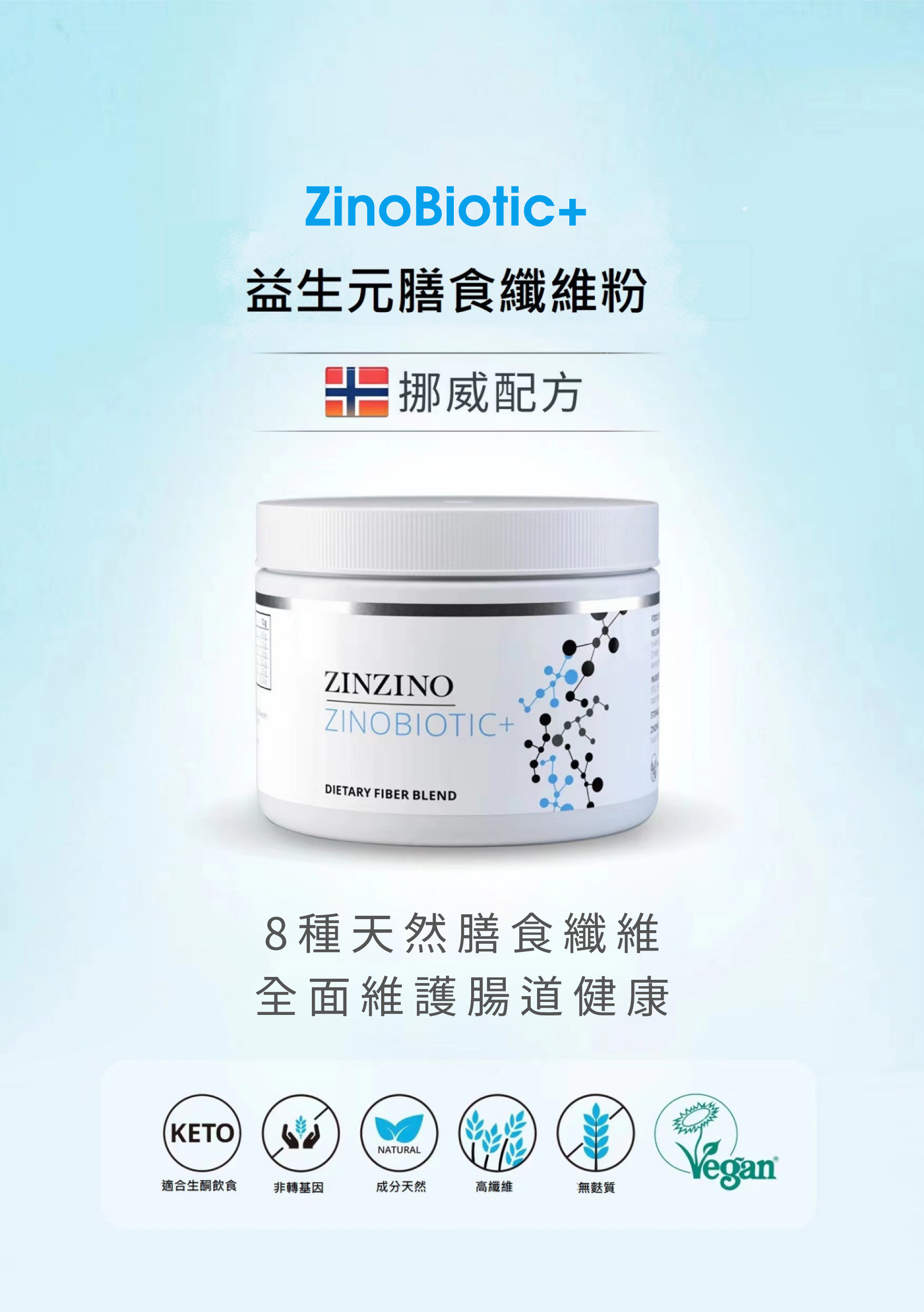 | 產品規格 | 品牌:ZINZINO 聖希諾 品名:益生元膳食纖維粉 ZinoBiotic+ 容量:180g |