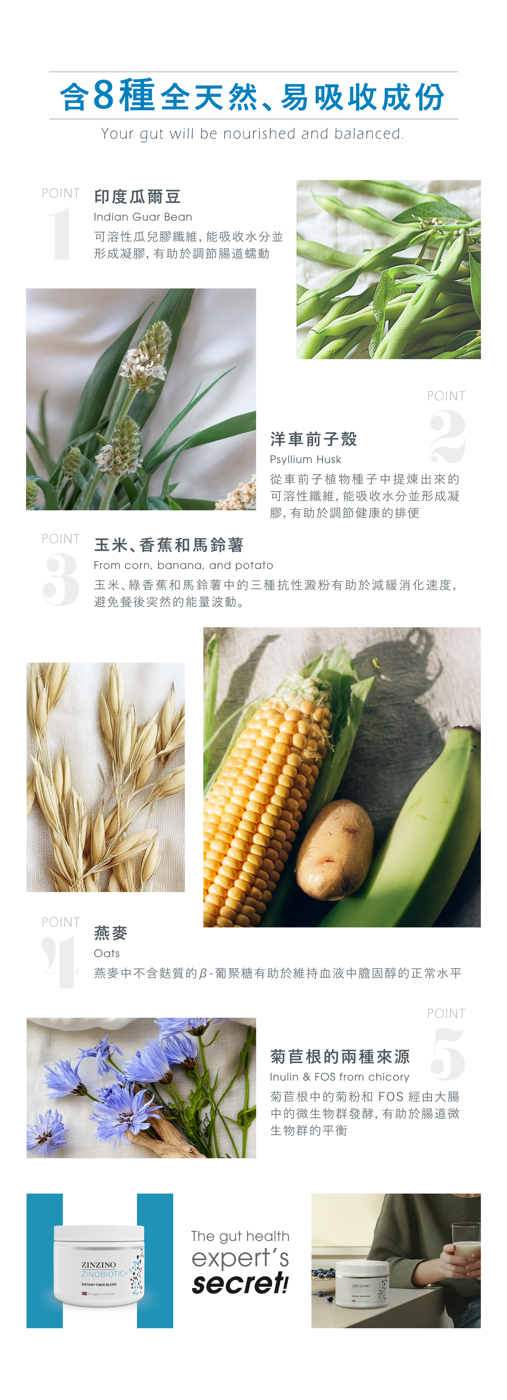 1.融合八種天然膳食纖維,輕鬆養護不費力