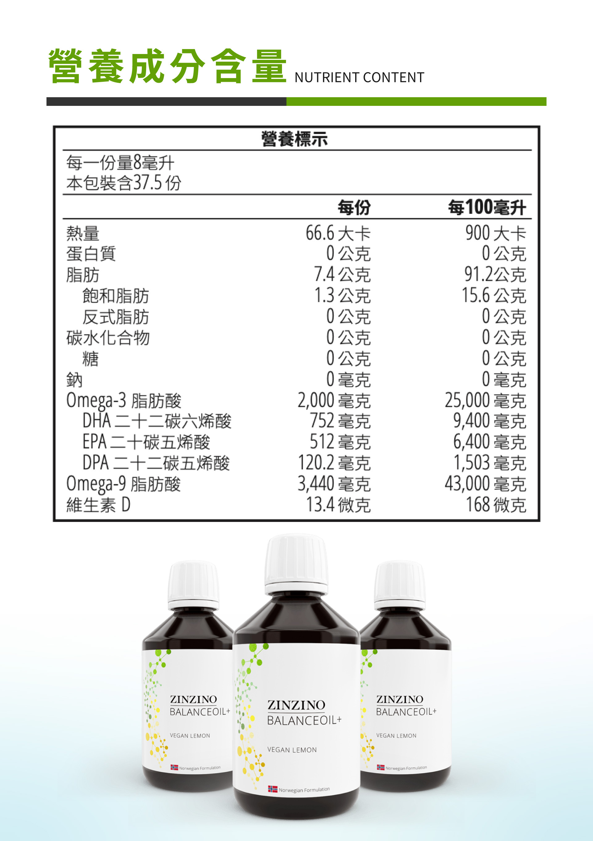| 產品規格 | 品牌:ZINZINO 聖希諾 品名:全方位平衡油(素食) 容量:300ml |