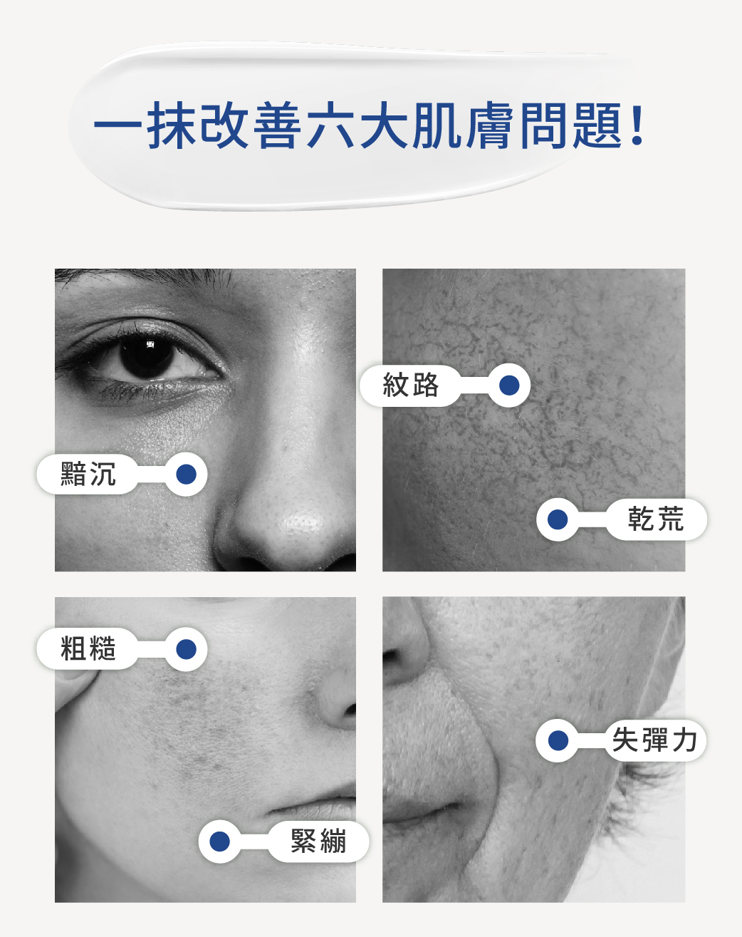 | 注意事項 | 初次使用或敏感性肌膚者,請在使用前先於局部肌膚試用,確定無過敏反應再於全臉使用。保養品的選擇因個人膚質膚況而不同,不同的季節,年齡及肌膚狀況,建議要適時調整,也可先諮詢皮膚科醫生。使用時若有紅、腫異狀時請暫停使用,並立即洽詢醫生。 |