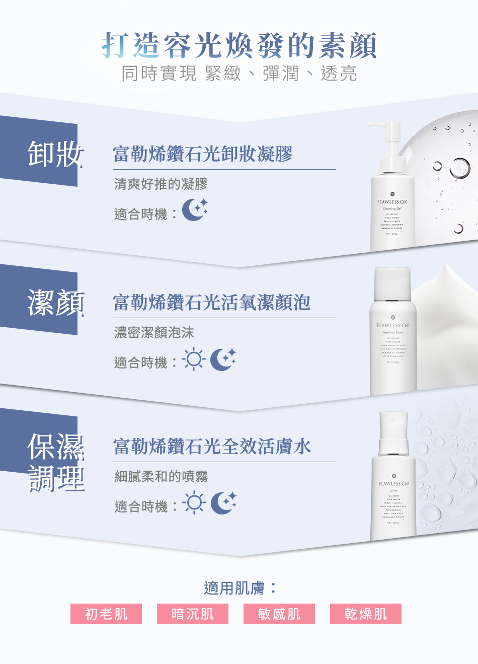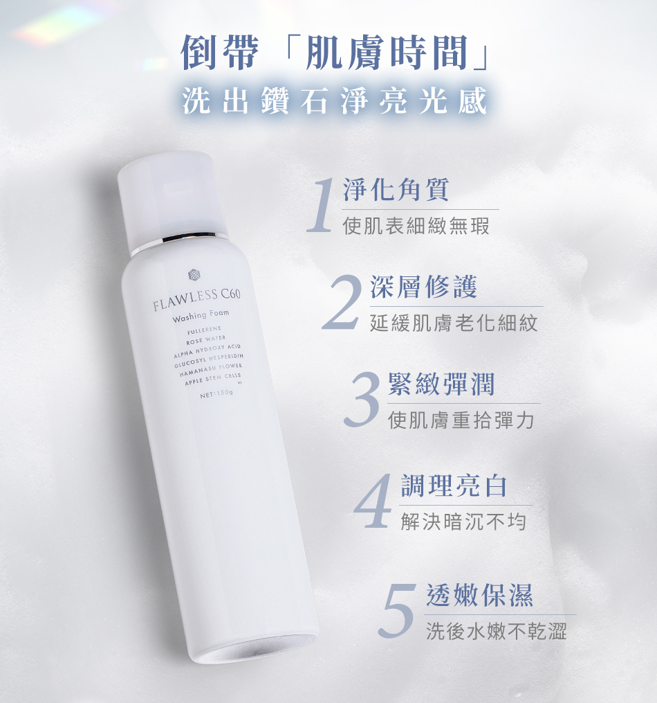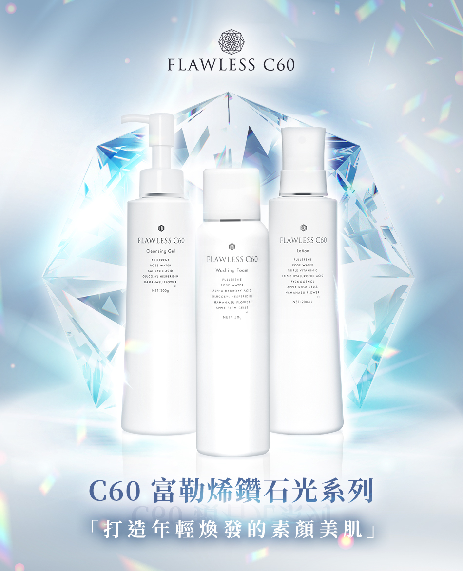 | 產品規格 | 品牌:FLAWLESS 品名:C60富勒烯鑽石光幕絲潔顏泡 |