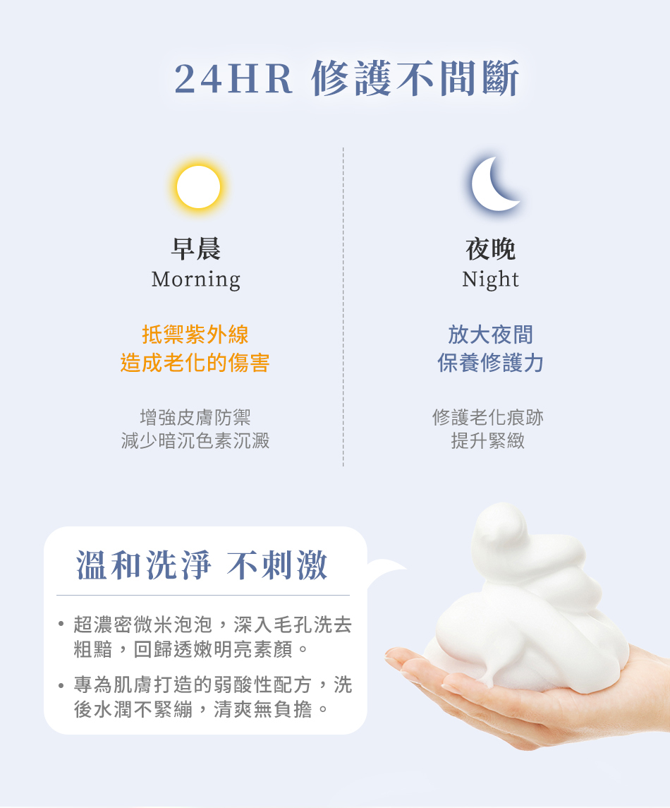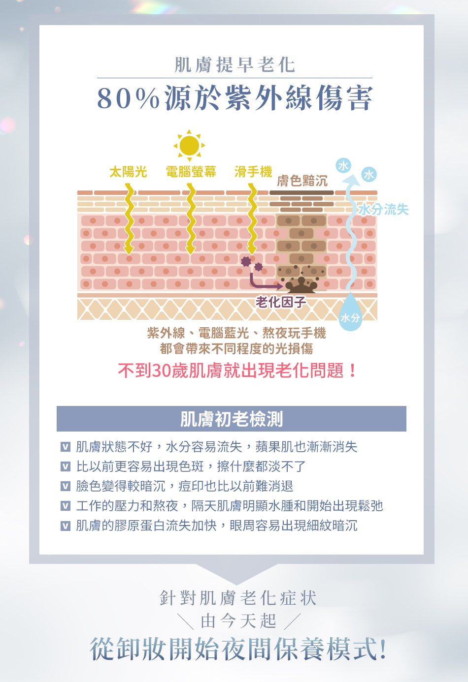 6.清潔同時達到淨化角質、調理亮白、潤澤保濕、延緩老化