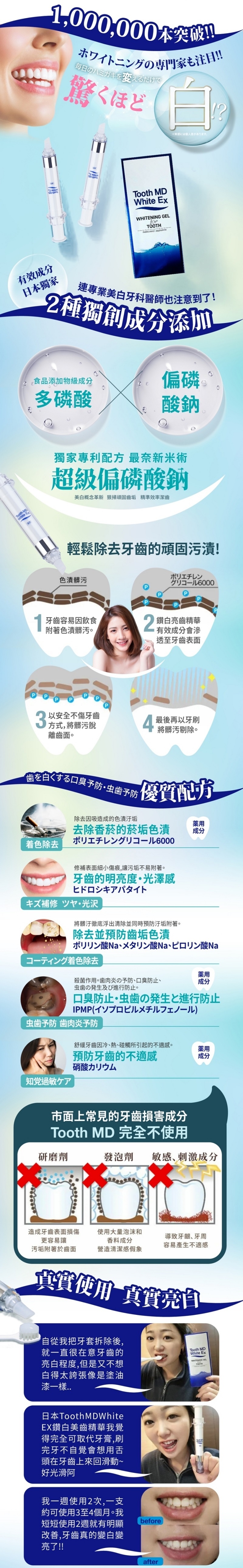品牌:Tooth MD White EX 品名:鑽白美齒精華 容量:11ml |