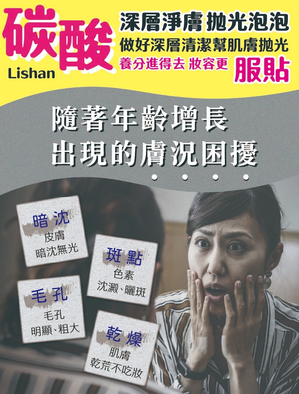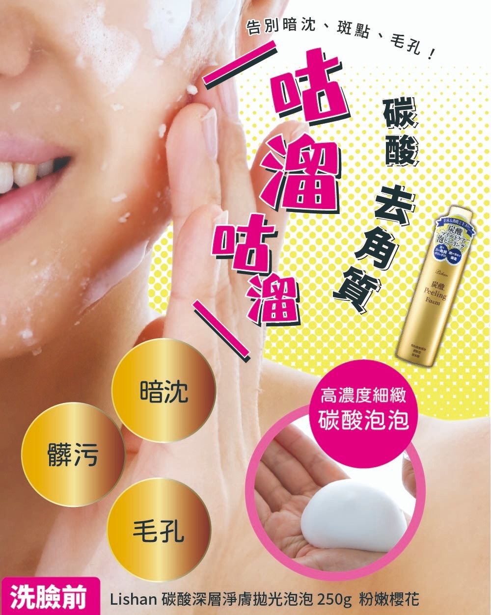 品牌:Lishan 品名:碳酸泡泡去角質淨膚慕絲 容量:250g |