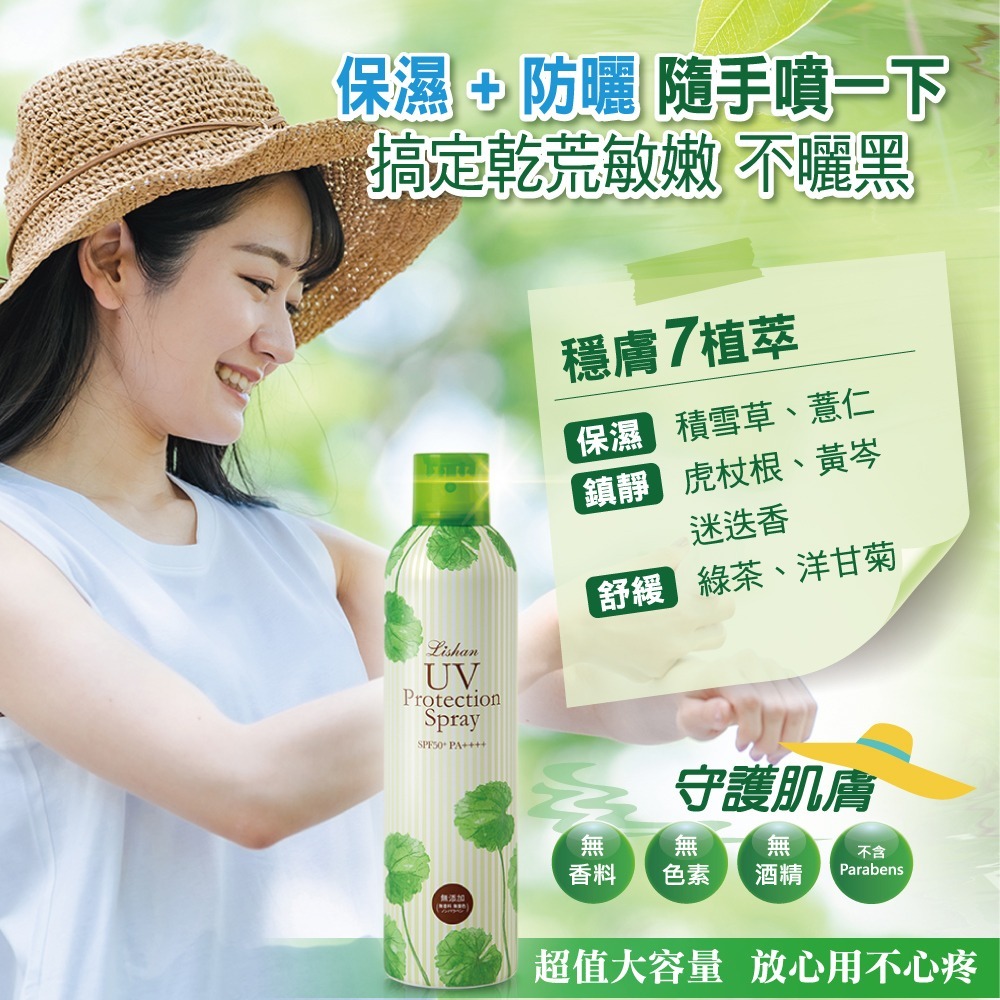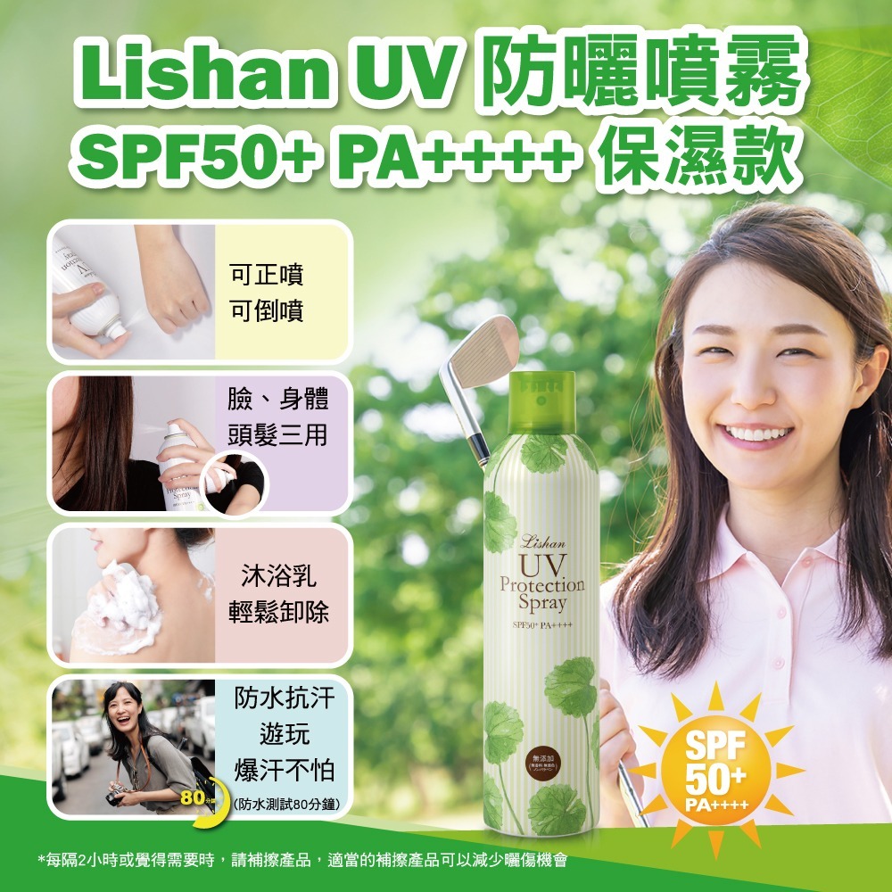 品牌:Lishan 品名:UV 防曬噴霧 SPF50+ PA++++(小雪保濕修護款) 容量:200g |