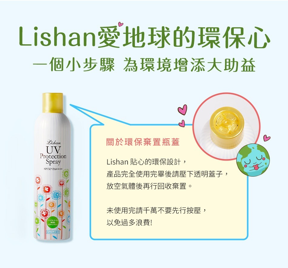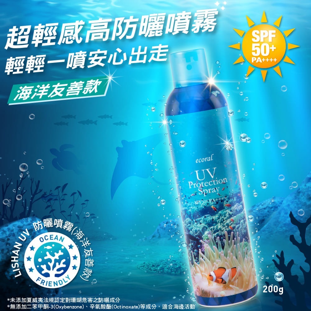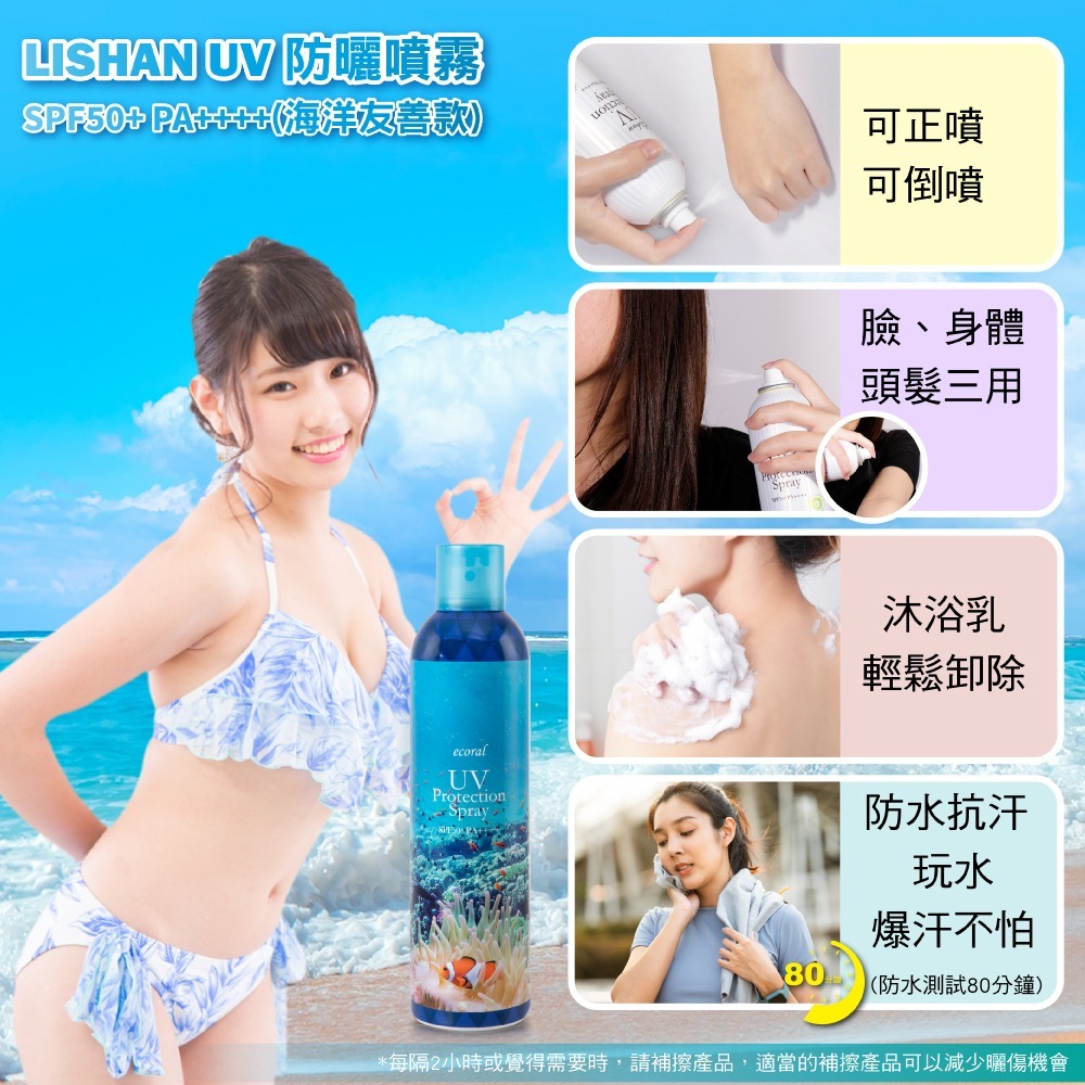 品牌:Lishan 品名:UV 防曬噴霧 SPF50+ PA++++(小藍海洋友善款) 容量:200g |