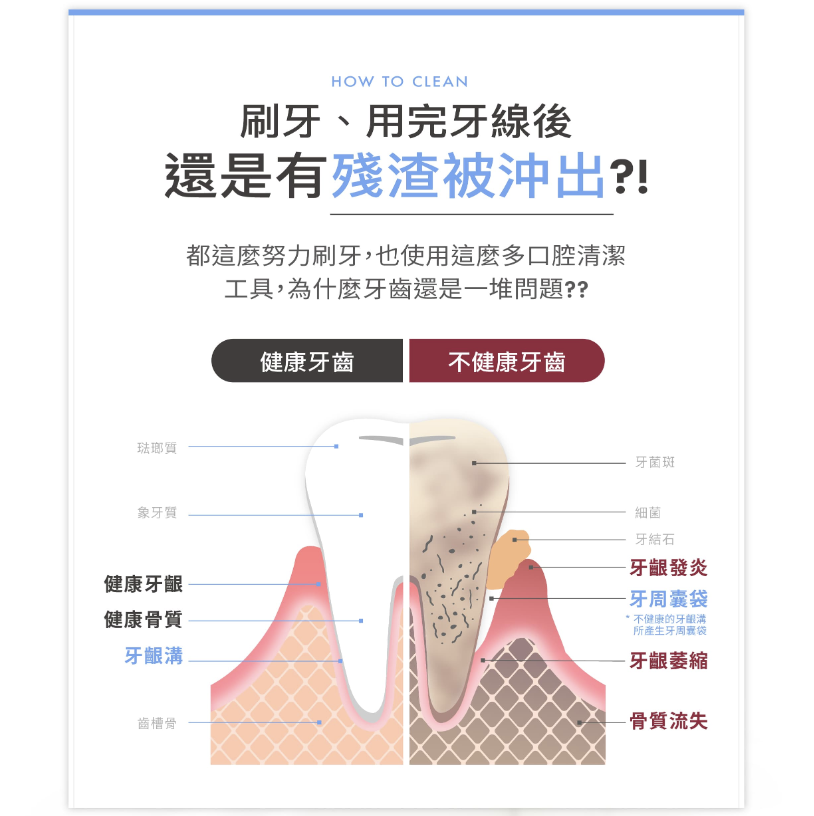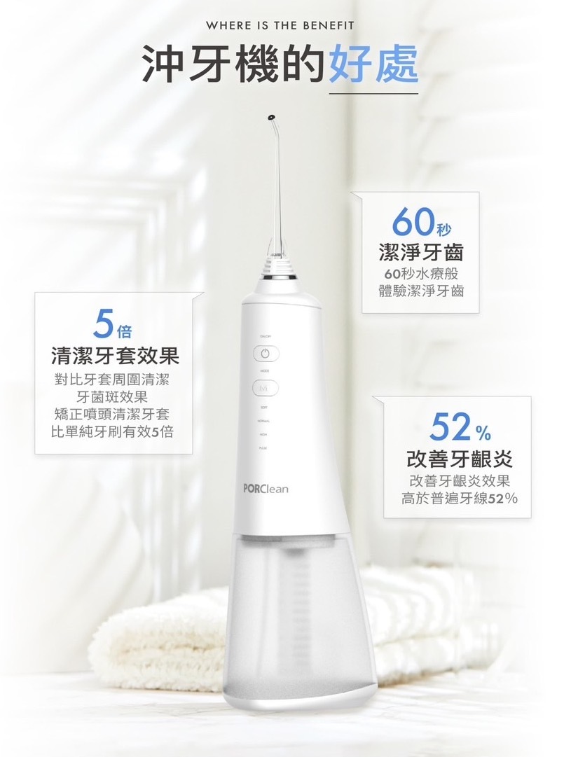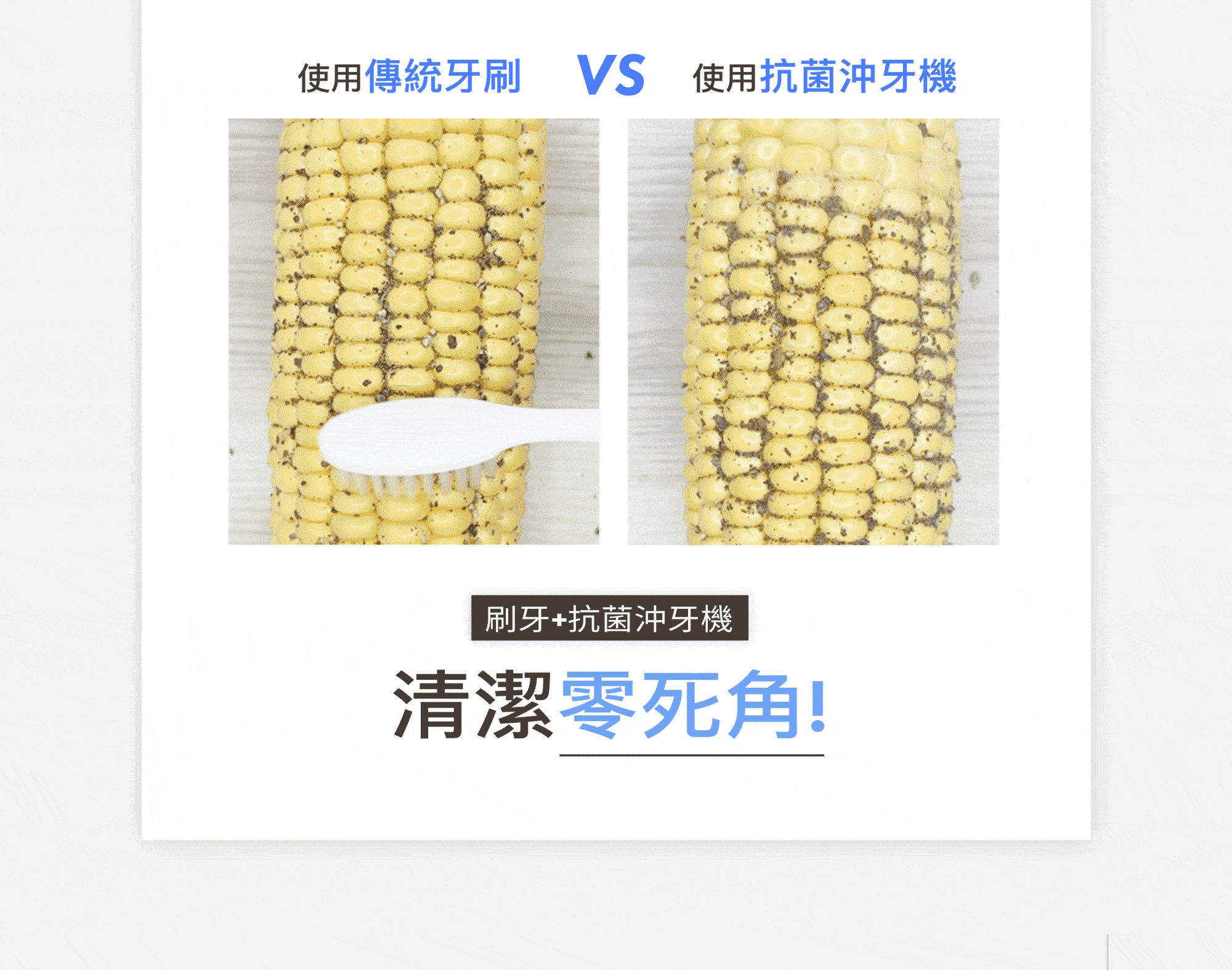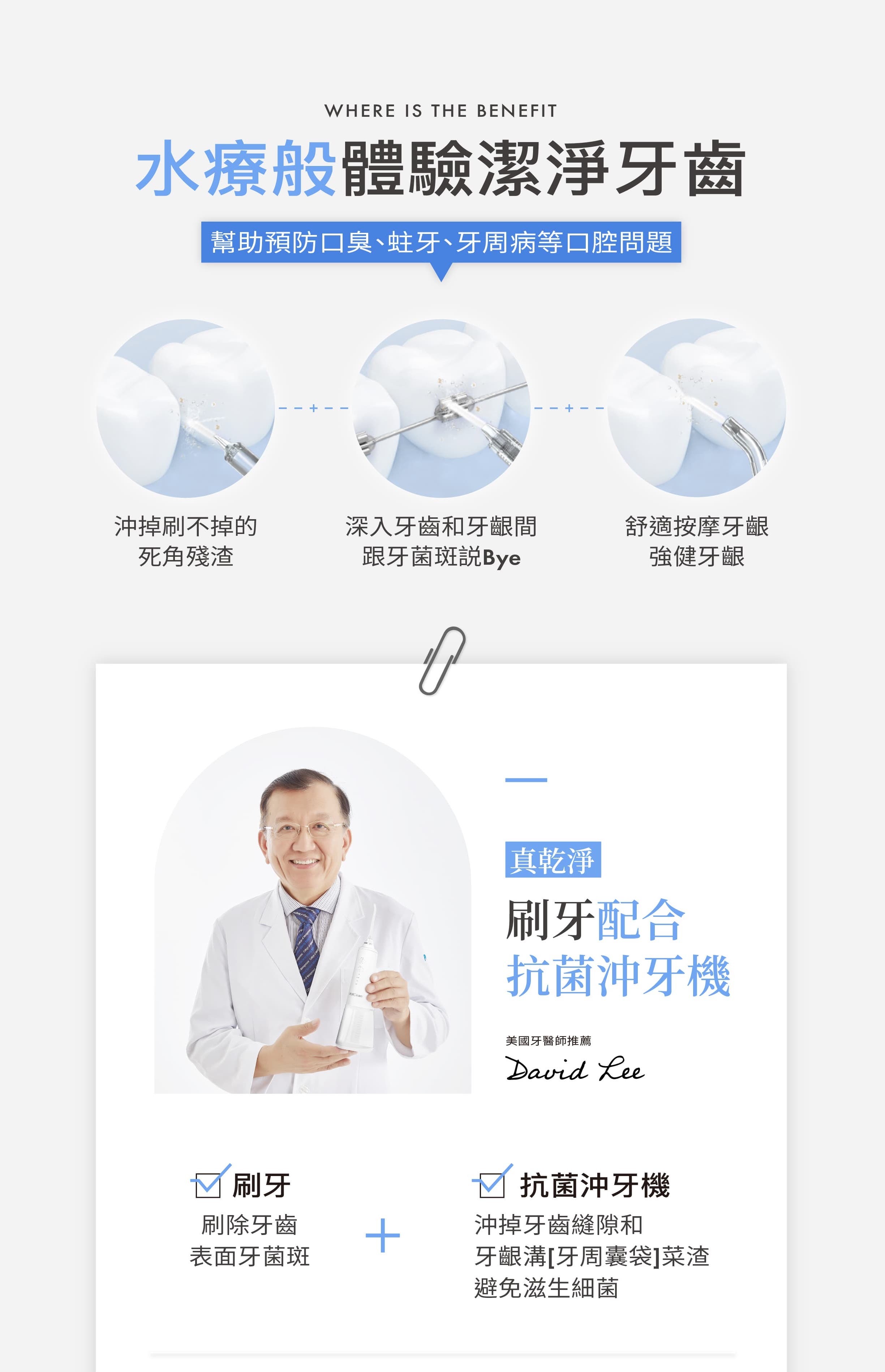 5.利用水療般的韻律水柱,溫柔沖出『齒縫骯髒』、『按摩牙齦』、『清除牙垢』⛔免剔⛔免摳⛔免刮