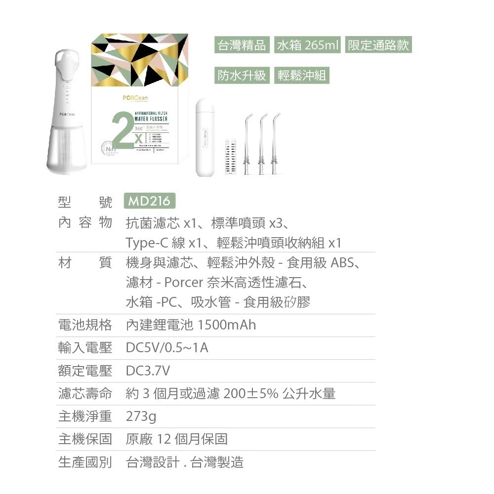 品牌:寶可齡 品名:MD216抗菌沖牙機 淨重:273g |