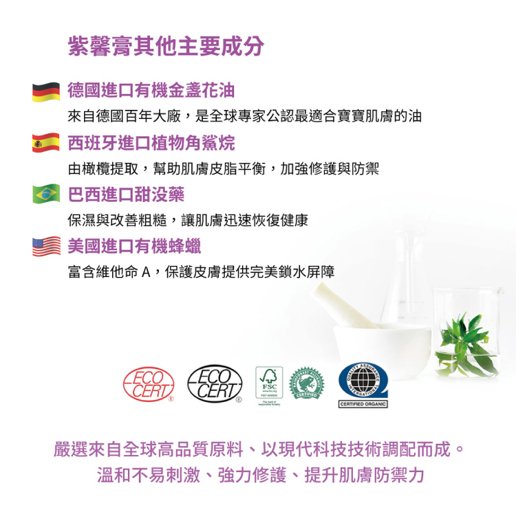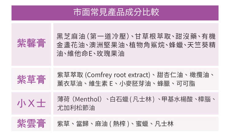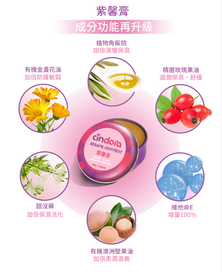 新版紫馨膏提升了黑芝麻油的比例,成分功能、觸感、修護潤澤效果再升級!國內最大月子餐品牌「紫金堂」指定聯名商品!隨時照顧全家人的肌膚,媽媽包裡不可或缺的法寶。
