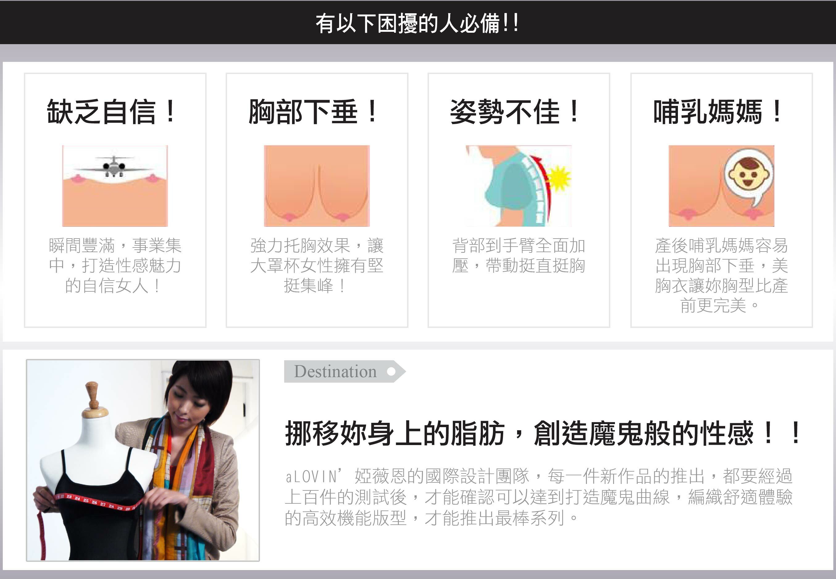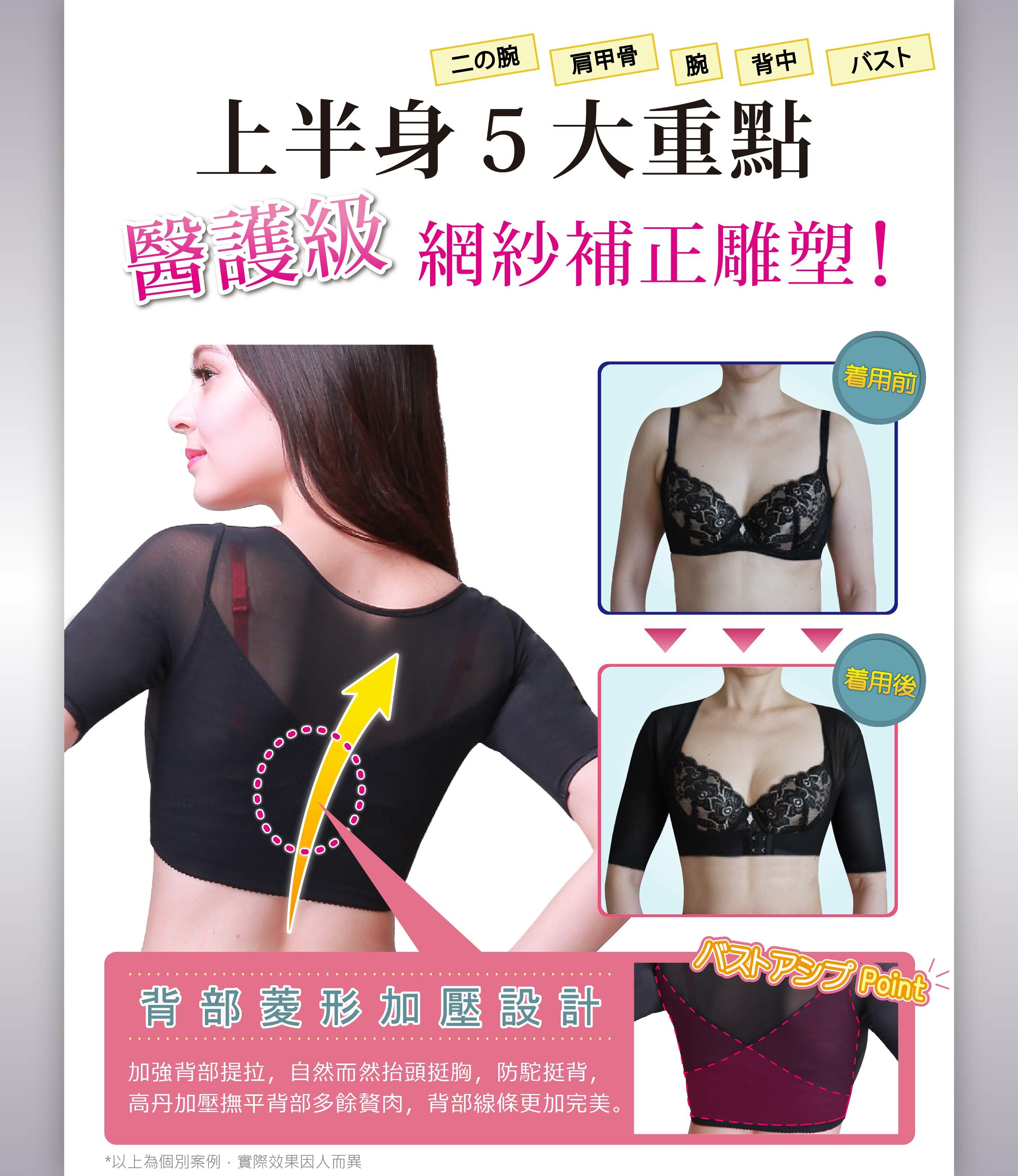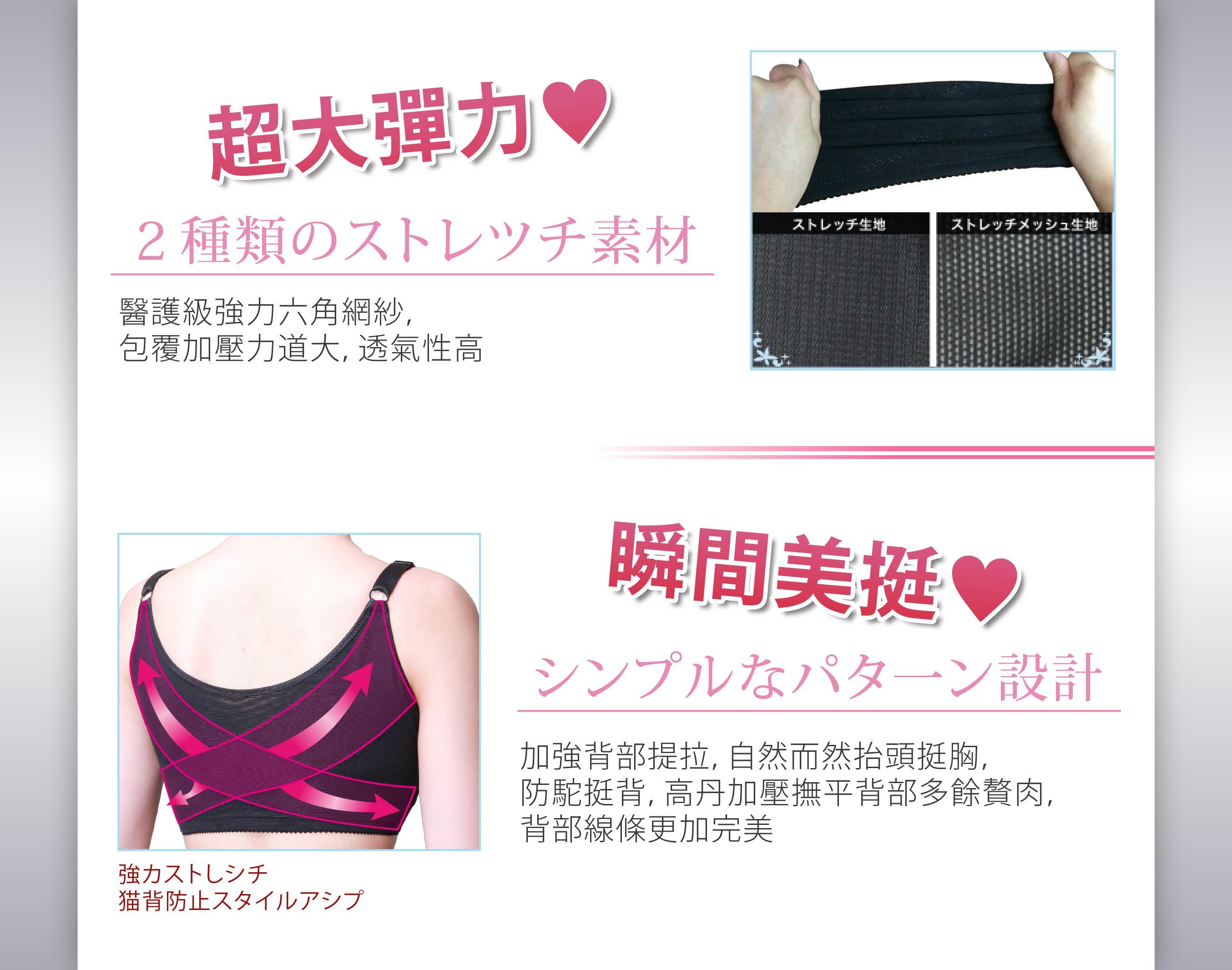 | 使用方式 | 1. 先穿內衣再穿超胸衣,加強挺立背部,挺胸更自信。 |