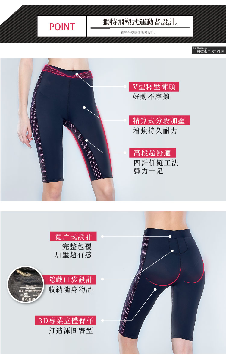 ✔ 獨特飛塑式美型設計,分段加壓,收緊贅肉