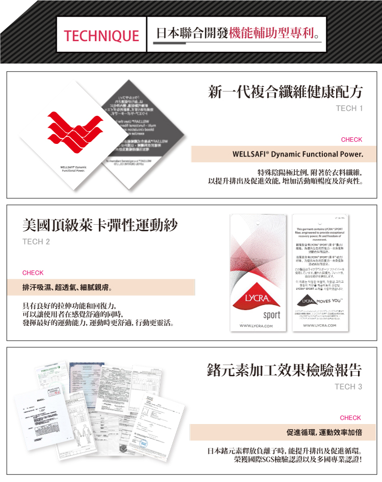 ✔ 日本WELLSAFI鍺鈦獨家授權添加,運動效率加倍