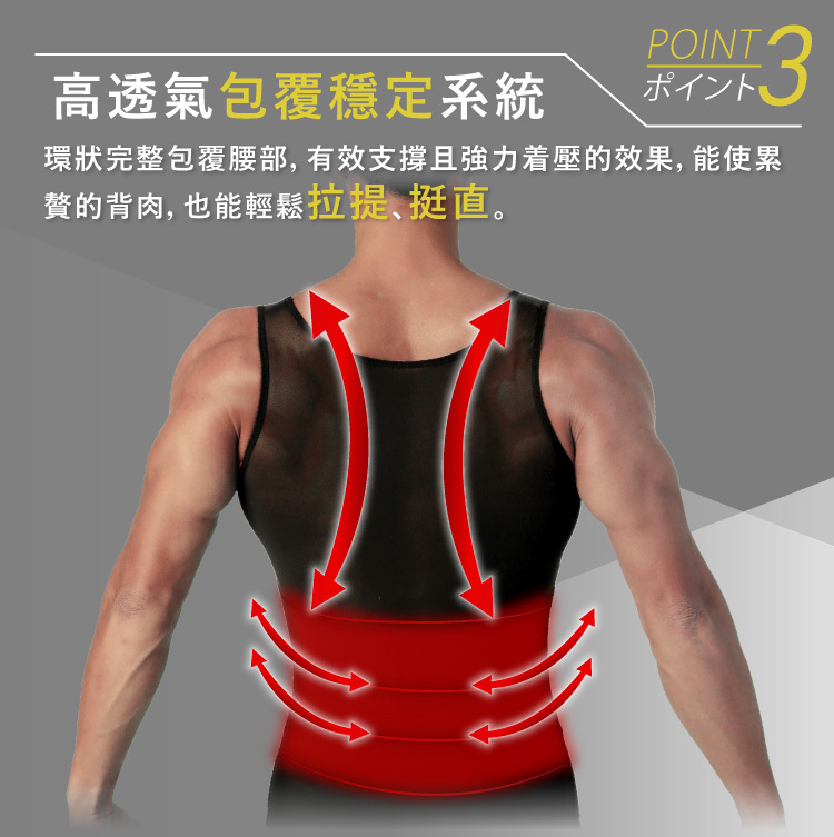 | 產品特色 | 獨家授權添加日本三大專利配方 有機鍺、咖啡因、覆盆莓 溫泉石遠赤高D360環狀加壓 高透氣包覆穩定 新一代六角網紗輕薄強韌材質 穿搭不穿幫 人體工學男性黃金比例打造設計。 |