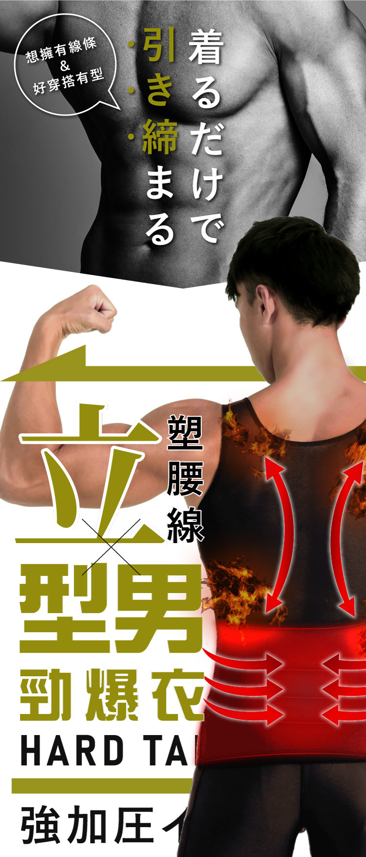 | 使用方式 | 1. 將型男勁爆衣捲起,從腿部由下往上順勢穿,往上拉至腹部。 |