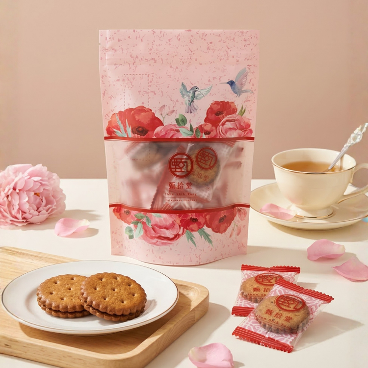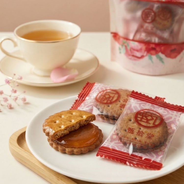 | 產品規格 | 品牌:甄拾堂 品名:黑糖麥芽餅輕享包 淨重:90g±5g 成分:麵粉、麥芽、黑糖、焦糖、棕櫚油、大豆油、鹽、碳酸氫銨、碳酸氫鈉 |