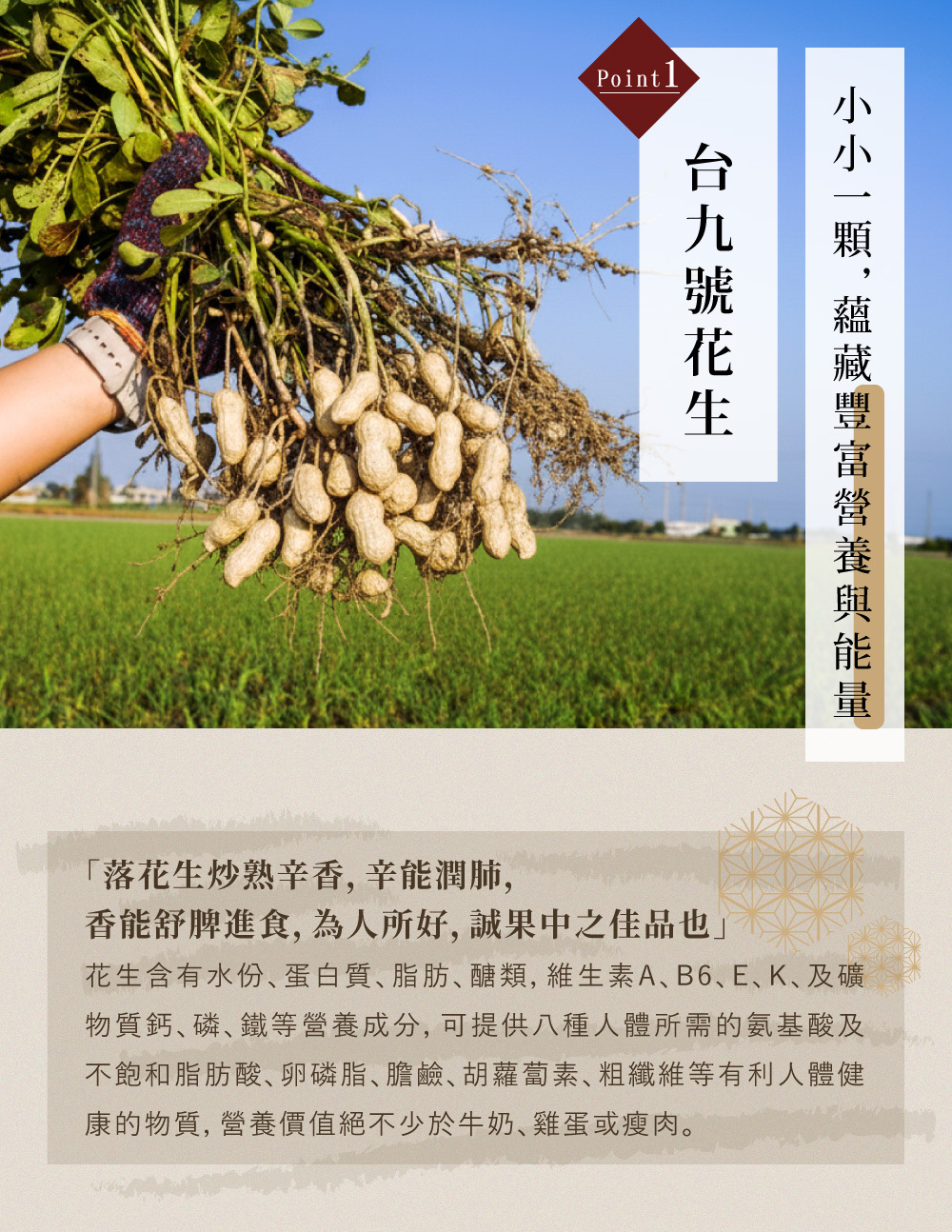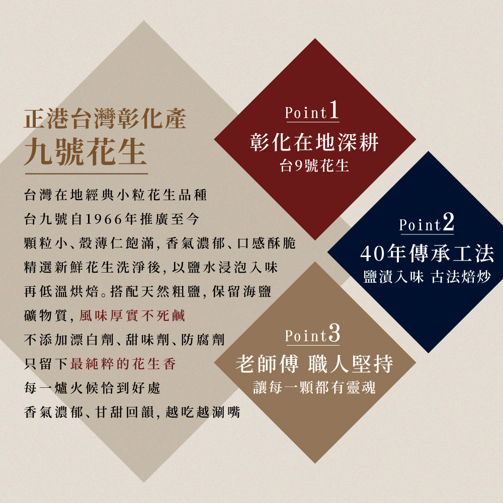 1.嚴選彰化正港9號花生,小顆粒、殼薄仁飽滿,香氣特濃