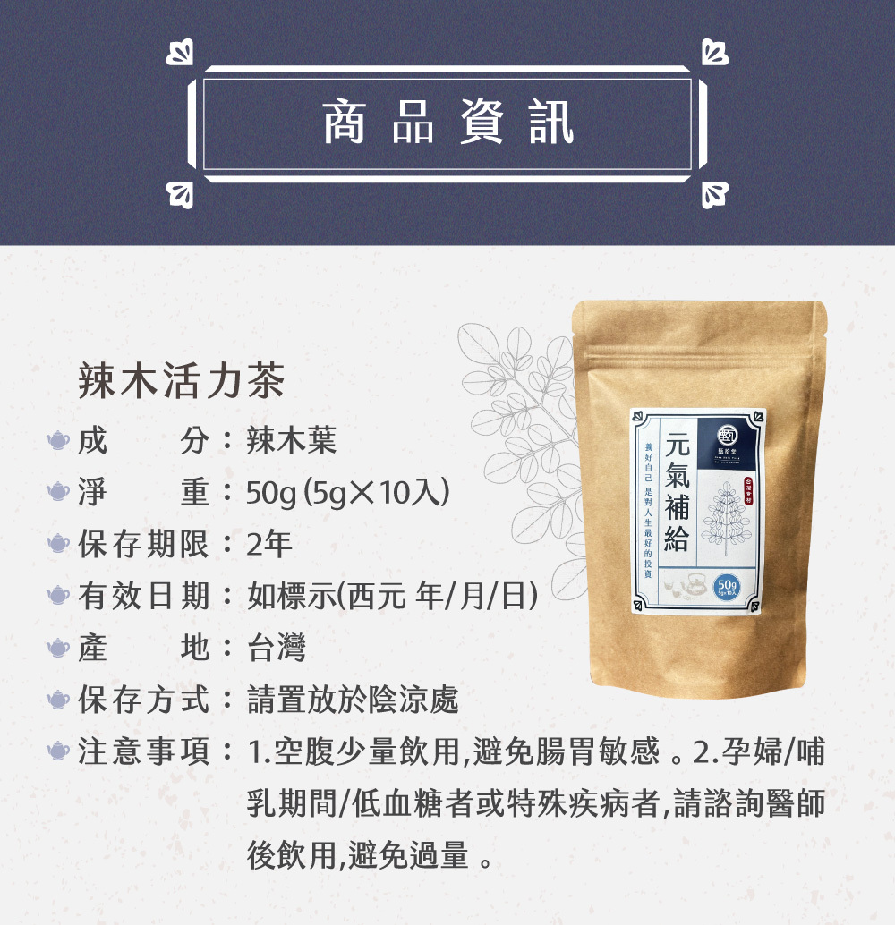 品牌:甄拾堂 品名:辣木活力茶 淨重:5g*10入 成分:辣木葉 |