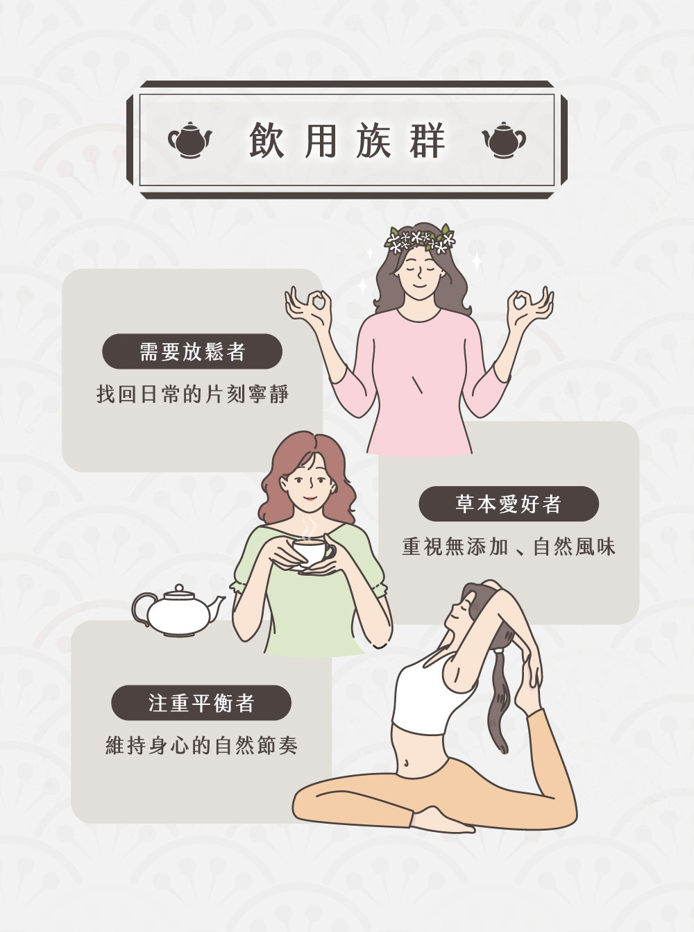 草本香氣溫和,適合日常保養。茶湯清香甘潤,不苦不澀,柔和草香、溫潤茶感。 |