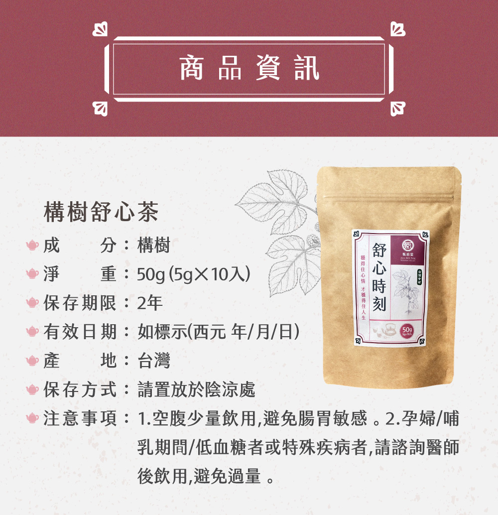 品牌:甄拾堂 品名:構樹舒心茶 淨重:5g*10入 成分:構樹 |