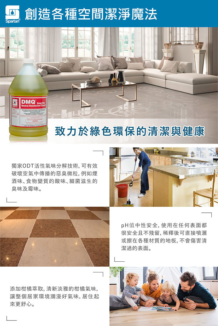 | 產品規格 | 品牌:斯巴達 SPARTAN 品名:DMQ高濃縮抑菌地板清潔劑(環保專業版_3790ml) 容量:3790ml |