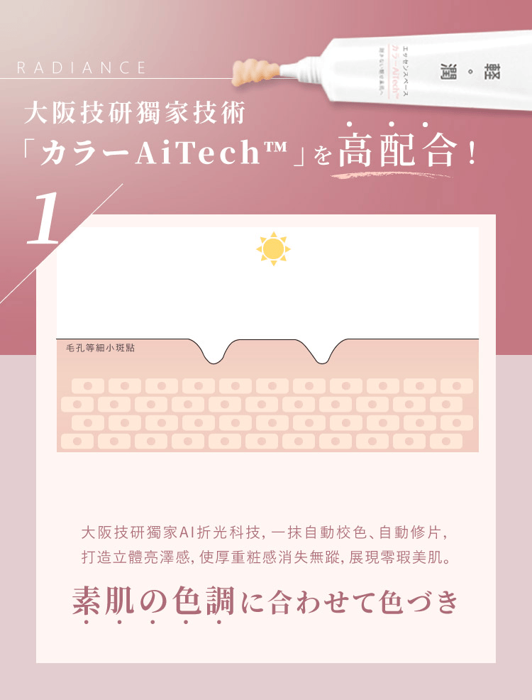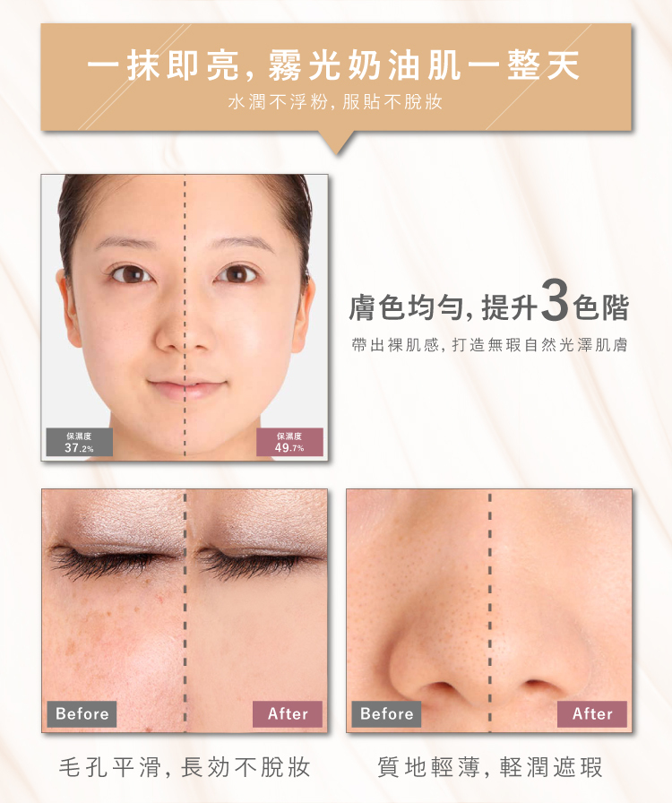 1. 專為亞洲膚質打造輕透、亮澤底妝,上妝同時深度養膚!