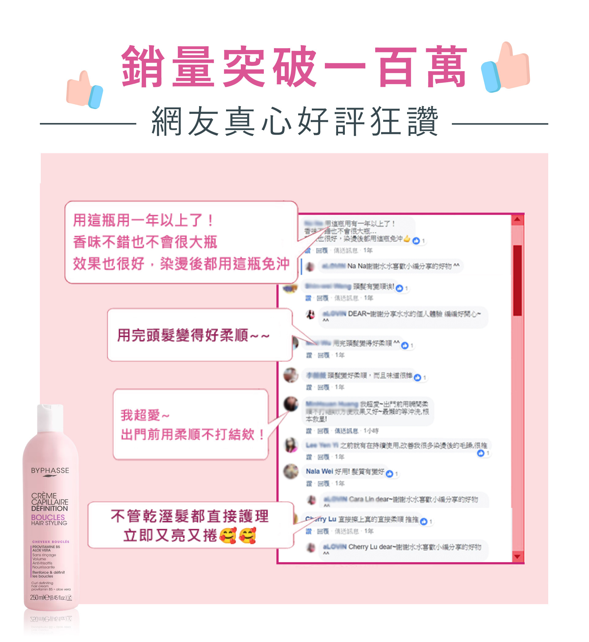 品牌:蓓昂斯 BYPHASSE 品名:乾溼兩用護捲魔髮素 容量:250ml |