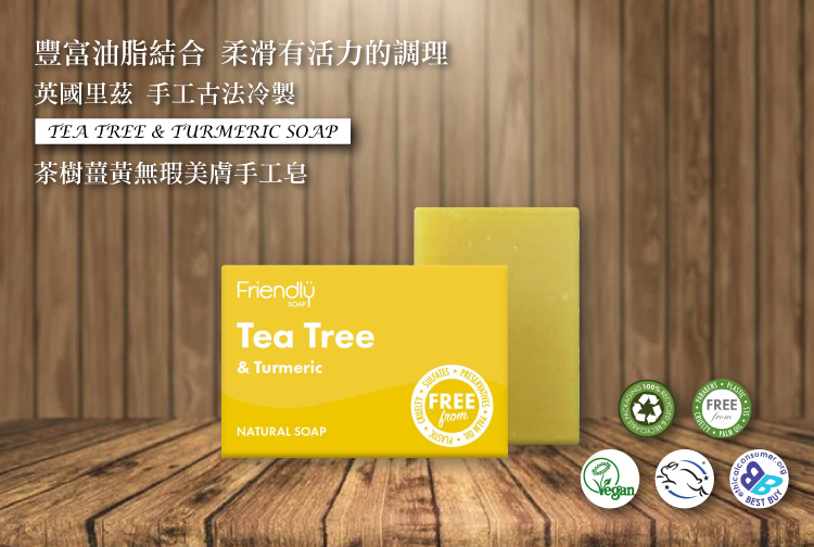 品牌:富樂皂FRIENDLY SOAP 品名:茶樹薑黃無瑕美膚手工皂 容量:95g |