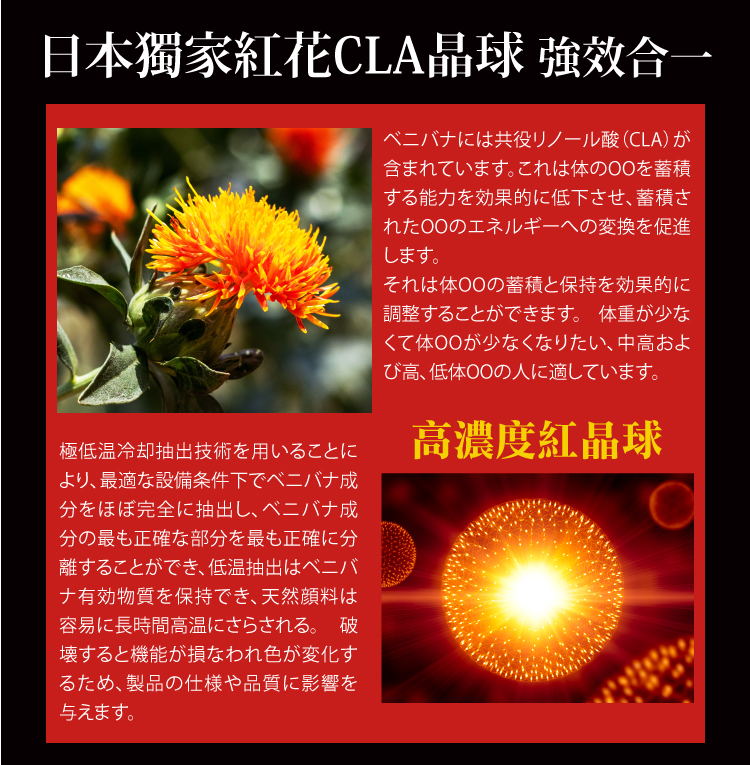 1.日本獨創零下40度紅花液晶低溫萃取技術