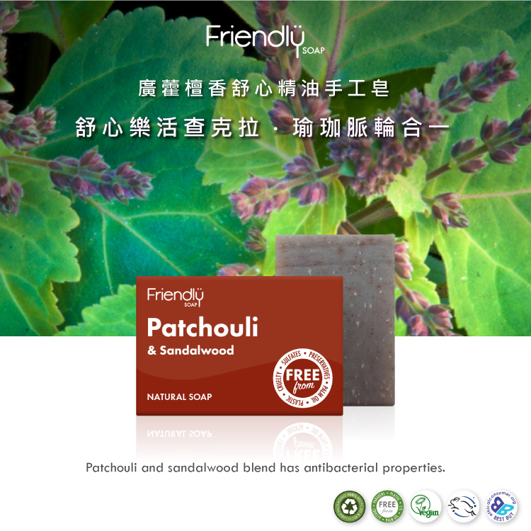 ♛【富樂皂FRIENDLY SOAP 】廣藿檀香舒心精油手工皂(95g)