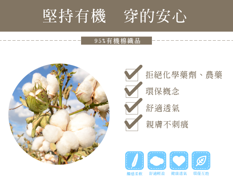 ✔採用天然有機棉+5%Spandex纖維