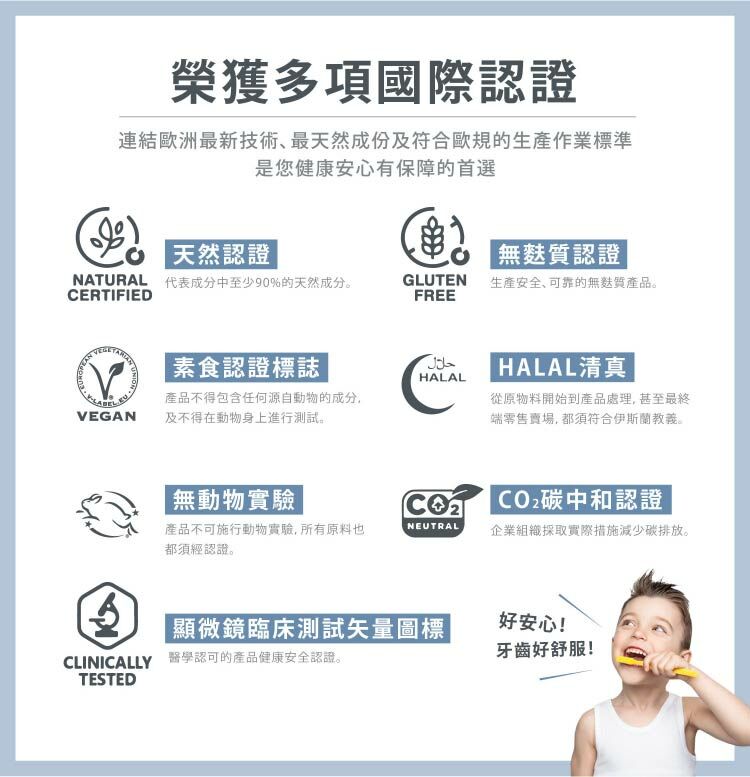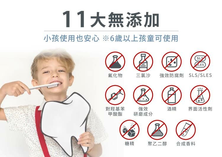 5.不含氟化物、強效研磨成分、酒精、合成香料