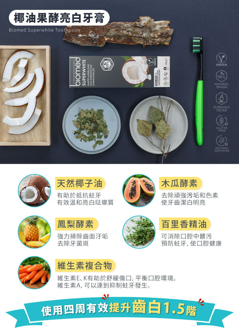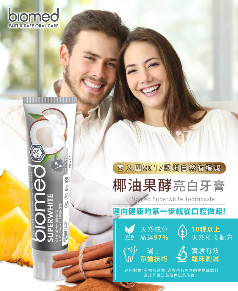 | 產品規格 | 品牌:Biomed 品名:椰油果酵亮白牙膏 容量:100g |