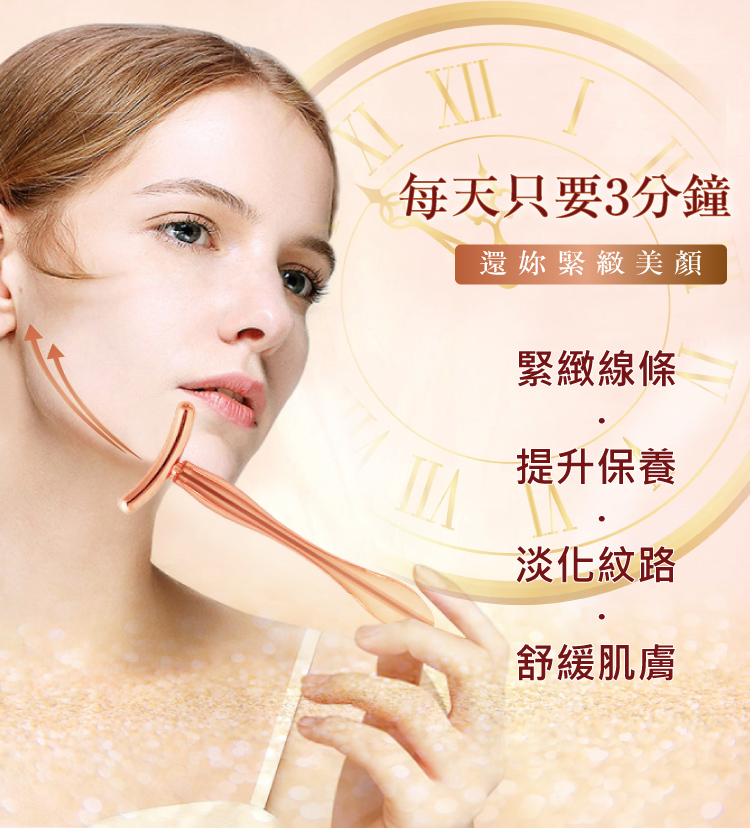| 產品特色 | 塑造美麗的V型臉,為您的肌膚灌注活力,恢復青春亮麗的肌膚。弧形按摩頭設計完美貼合臉部輪廓,輕鬆按摩臉部,提升舒適的護膚使用感,塑造緊緻流暢的臉部線條。每天使用美容棒按摩,2-3分鐘即可簡單快速完成。 |