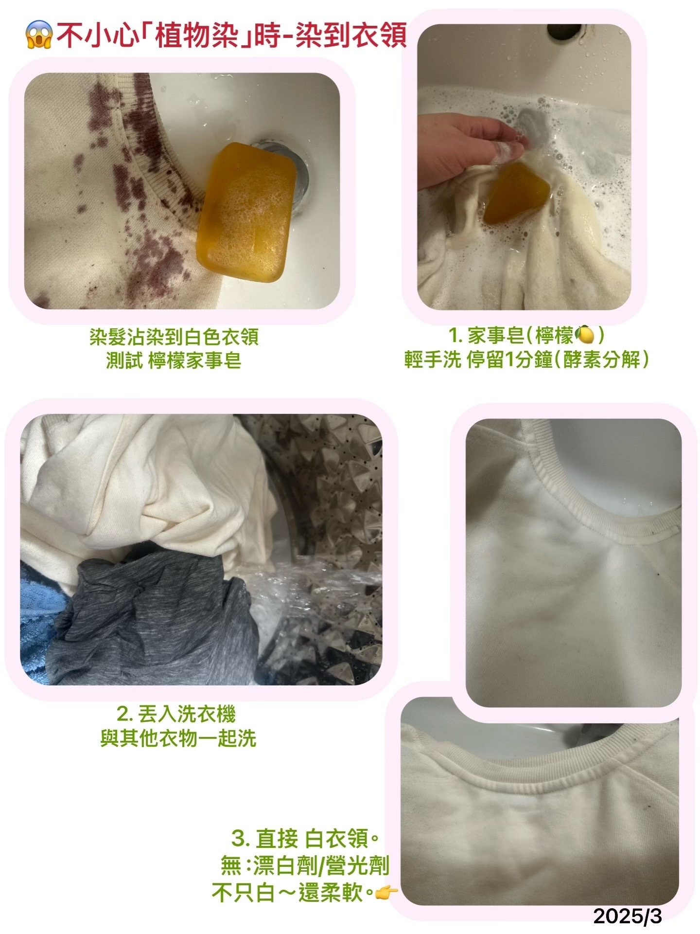 檸檬 (橘色小花): 1.手洗模式:直接塗抹污漬處,輕輕搓洗,泡泡停留10~15秒後沖淨。晾乾後衣物柔軟透氣,白色衣物久曬也不泛黃,完全不需柔軟精。 2.洗衣機模式:丟進洗衣機前,先塗抹污漬處,效果更佳。 咖啡 (黑色小花): 1.輕鬆清潔:先沖掉殘渣,將皂塗抹於菜瓜布或起泡網上,輕輕刷洗後沖水即可。 2.深層去油:針對油膩重度污垢,塗抹後靜置3-5分鐘再沖洗,效果立現!鍋具光亮如新,輕鬆回復閃亮潔淨。 |